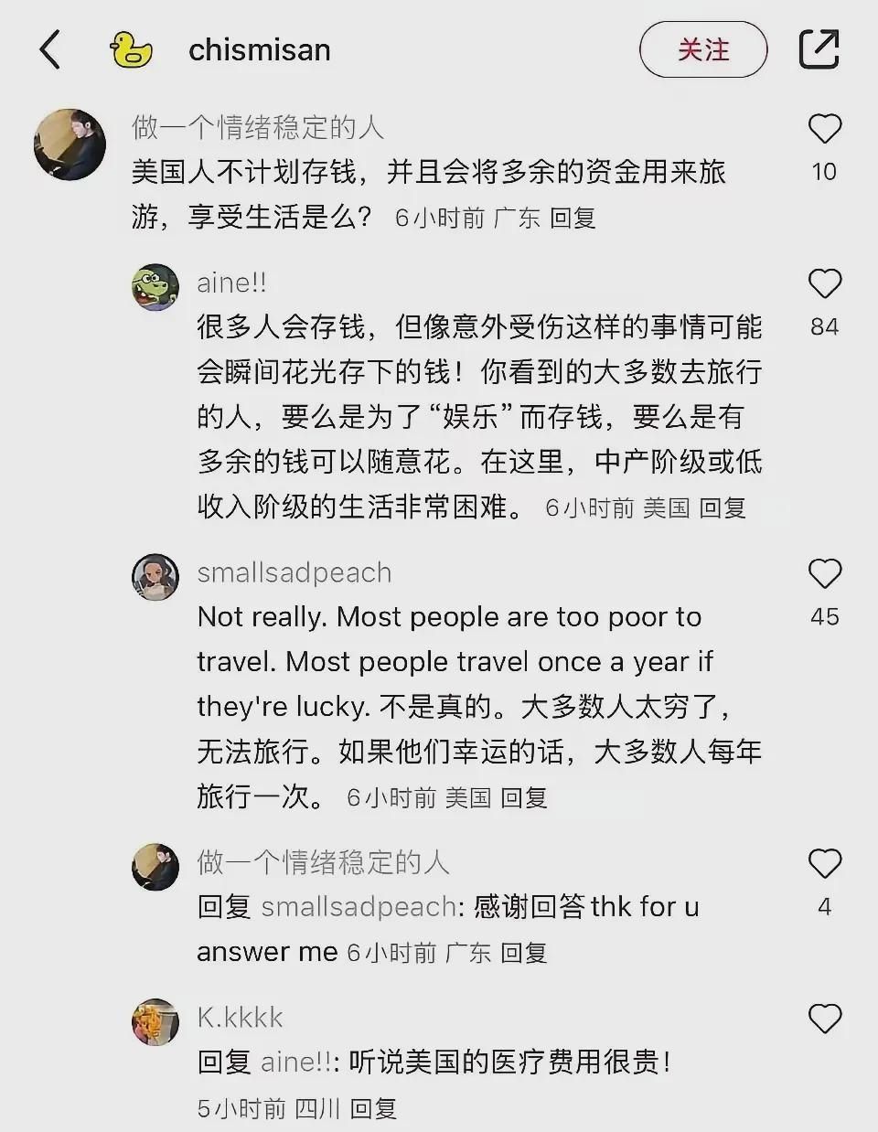 中美网民在小红书上互诉苦衷,中国网民称自己每年仅能出游一两次