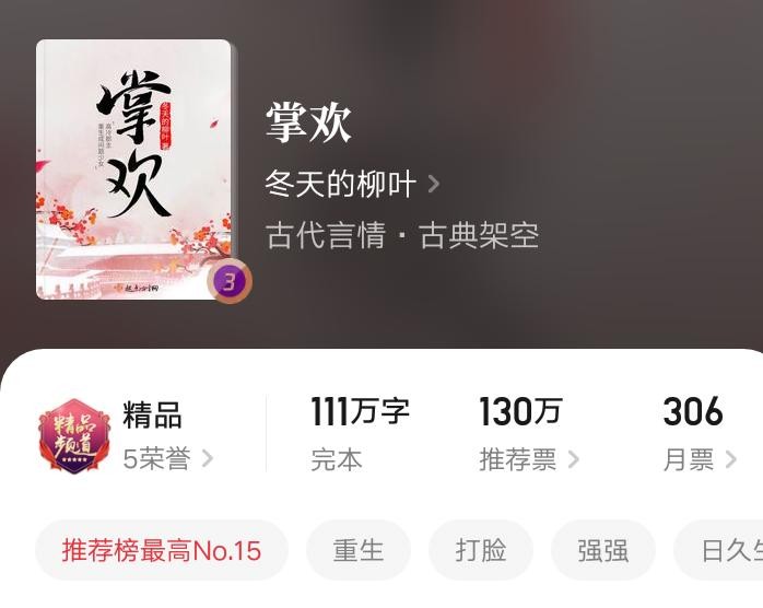 当然冬天的柳叶最新完结的书《掌欢》也非常好看,只是我已经单独推荐过了,在这里就不再同重复推荐。
